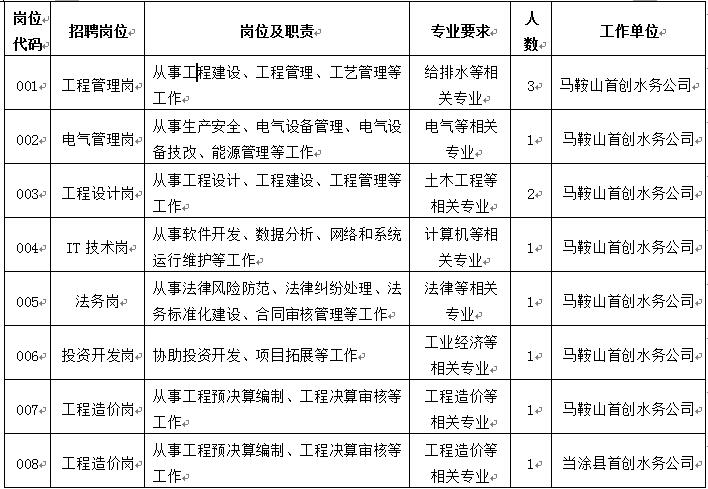 因工作需要,馬鞍山首創(chuàng)水務(wù)有限責(zé)任公司正式啟動(dòng)2020年度高校畢業(yè)生招聘工作,面向安徽省內(nèi)外各高等院校誠聘英才。